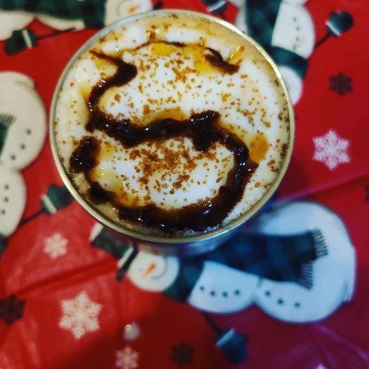 A little coffee sweetness for a rainy day: s’mores brown sugar latte with medium-dark Sumatra…and a few trimmings. It’s not hard to hold a latte in the cold November rain.